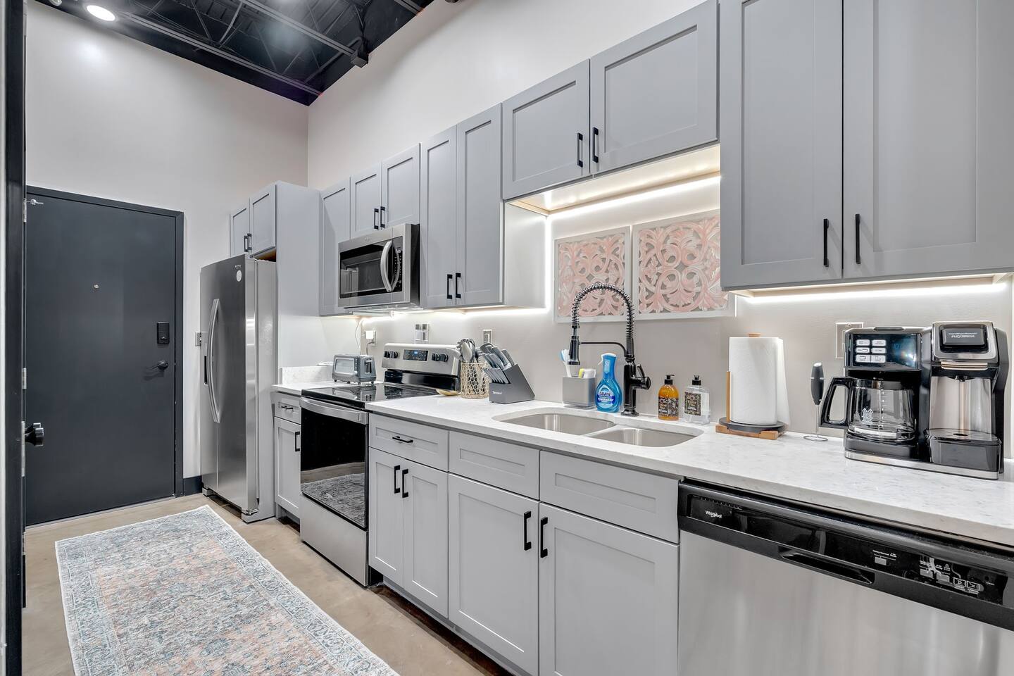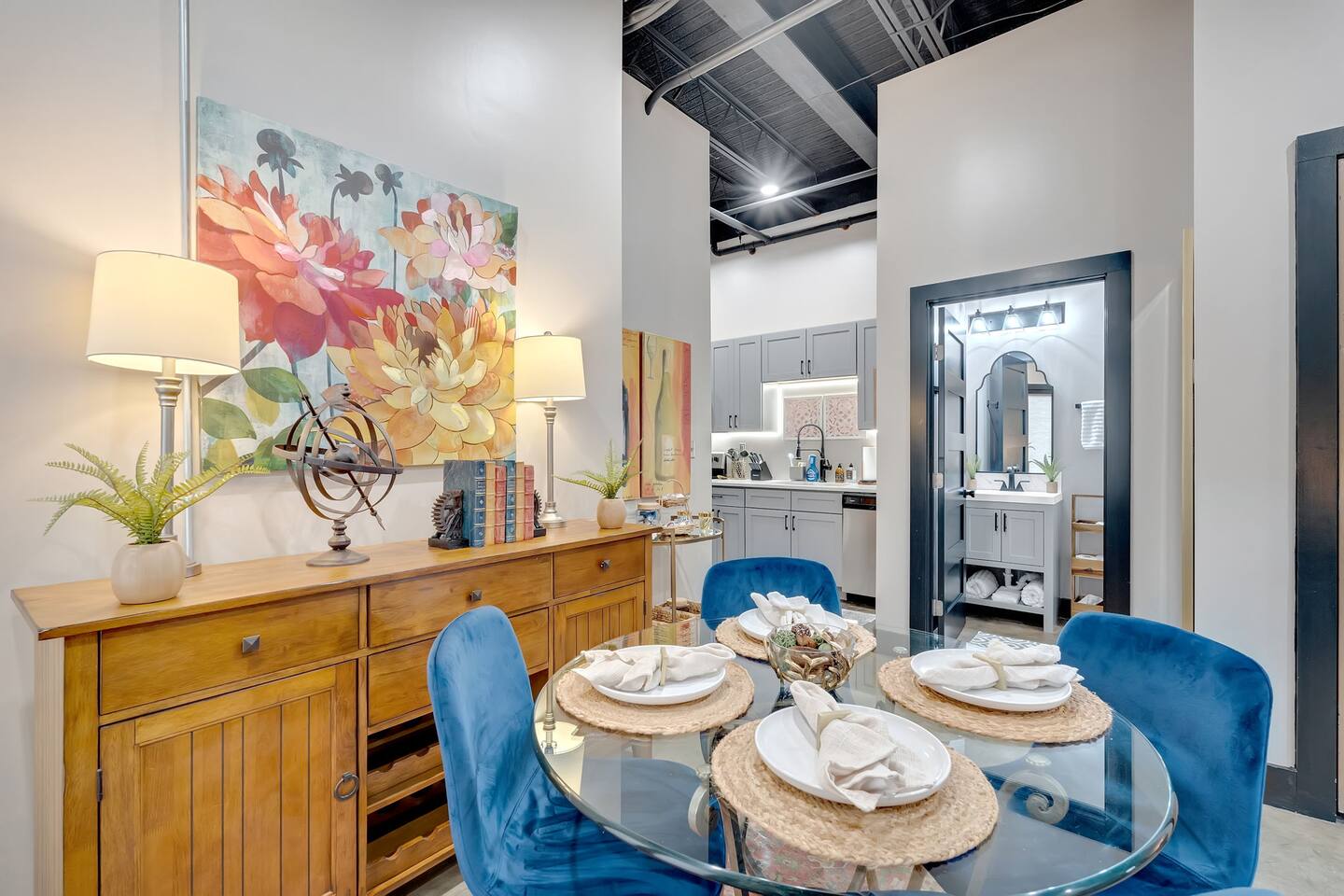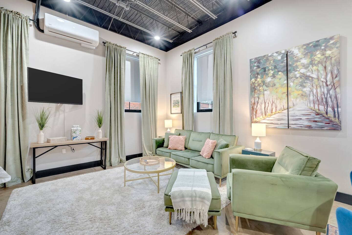 Update for September 28th, 2025: The gym previously located on the 1st floor is relocating and will be fully relocated by 10/6/25. Gym noise mentioned in past reviews will no longer be an issue. Welcome to The Juliette Loft | Downtown Kingsport Step into a beautifully restored 1-bedroom, 1-bath retreat inside the iconic Kingsport Telephone Building (est. 1930)—blending vintage charm with modern comfort. Ideal for business travelers, couples, and solo guests looking to stay in the heart of it all. 🛏 Inside the Loft: • Comfy queen bed in an open-concept layout • Full kitchen with coffee bar (pods, grounds, creamer & sweeteners) • Cozy seating + dining area, ideal for working or relaxing • Juliette balcony doors (secured for airflow—see guidebook) • In-unit washer & dryer • White noise machine & earplugs provided for light sleepers 📍 Walkable Downtown Location: Located on Commerce Street with easy access to: Local breweries, restaurants, shopping, and galleries Inspire Wine Bar (right below your loft!) Coffee & shopping steps away Quick drive to: • Domtar Park – 2.9 mi • Indian Path Med. Center – 4 mi - Holston Valley Medical Ctr. 0.9 mi • Bristol Casino – 22 mi • Johnson City Med. Center – 22 mi Additional Info: 2nd-floor walk-up (no elevator) Mix of long-term tenants and small businesses in the building Occasional business or street noise expected All guests must sign a rental agreement prior to check-in Digital guidebook provided with booking confirmation The Juliette Loft is a stylish, well-appointed space full of character, perfect for guests who value location, charm, and walkability.