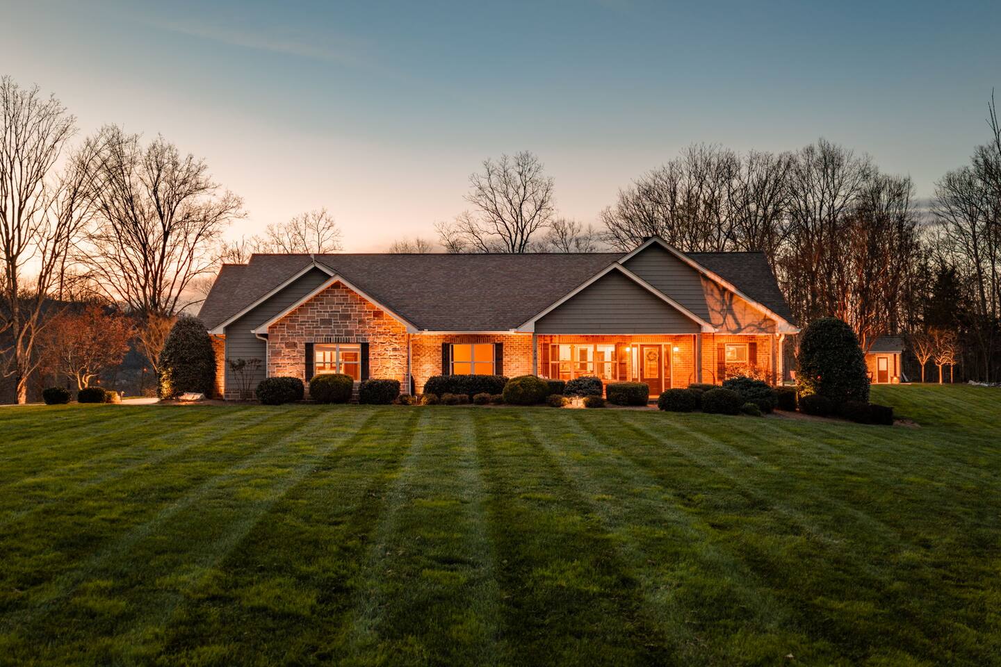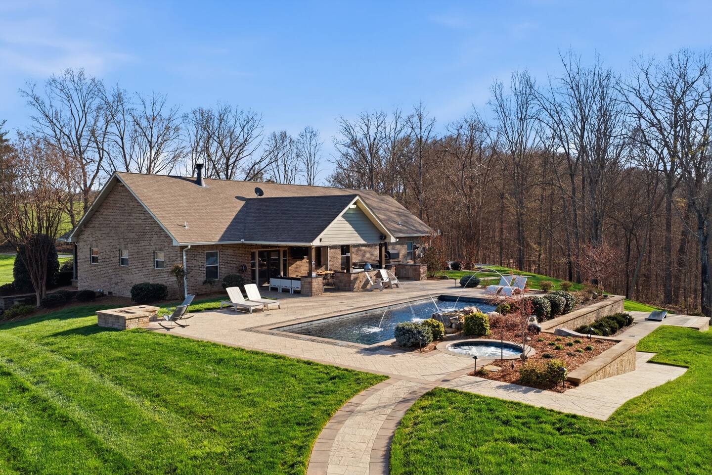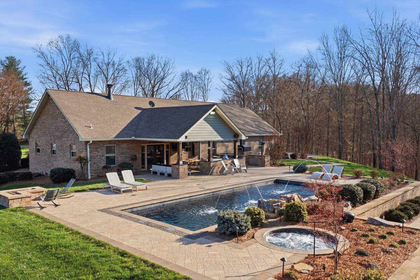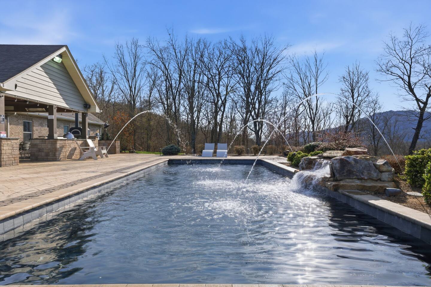 The Countryside by Peaceful Peak Private 26-Acre Retreat | Pool, Hot Tub & Outdoor Kitchen Escape to The Countryside — a private 26-acre modern rustic retreat designed for gathering, connection, and unforgettable stays. Perfect for couples traveling together or families, this 3-bedroom + loft home sleeps up to 10–12 guests and offers the space, privacy, and amenities you won’t find just anywhere — all just 10 minutes from Interstate 81. Why Guests Love The Countryside Private 26-acre setting with pasture views 🌿 Resort-style pool + hot tub Covered outdoor kitchen & dining area Sleeps up to 10–12 comfortably Perfect for families & group getaways Peaceful, secluded — yet close to everything Inside the Home Primary Suite King bed Spa-style ensuite bath Deep soaking tub Walk-in shower Additional Bedrooms Three main-level bedrooms. Primary with King and ensuite bath, 2 bedrooms with queen beds. 2nd Floor Attic Space (Great for Kids & Groups) Full-over-twin bunk bed Queen bed Sofa + TV Heated and Cooled/Window for natural light The open-concept 1st floor living area features warm textures, natural tones, and a wood-burning fireplace — perfect for relaxing after a full day outdoors. Outdoor Living (The Highlight) Private Pool + Backyard Experience In-ground pool with stone waterfall In-ground hot tub Fire pit gathering space Ambient lighting for evenings Expansive patio with open countryside views Covered Outdoor Kitchen Built-in grill, prep space & appliances Dining table for 6 Additional bar seating for 6 Covered space with mounted heaters A separate pool house with full bathroom adds convenience for outdoor living. There’s also space for yard games, making this ideal for families and group gatherings. A permanent cornhole area for family game night outdoors. The Experience Slow mornings with coffee on the porch. Afternoons spent poolside. Evenings under the stars. You may see cows grazing nearby and enjoy the quiet rhythm of country life — while still being minutes from dining, shopping, and major routes. Private. Peaceful. Designed for connection. The Peaceful Peak Standard We don’t just add homes to grow a portfolio — we carefully select properties that align with the experience our guests expect. Whether you stay at The Summit, The Nest, The District, The Wildflower, or The Countryside, you can expect consistency, care, and thoughtful preparation every time. Rental Agreement & Security Deposit All reservations for The Countryside by Peaceful Peak require a signed rental agreement and a $500 security deposit. After your booking is confirmed, you’ll receive a secure link to review and electronically sign the agreement, along with details regarding the security deposit. Please note, the rental agreement must be completed prior to arrival. Check-in instructions and access details will be shared once the agreement has been fully signed. The Countryside at Peaceful Peak is not a party venue. Parties and unauthorized events are strictly prohibited. The pool is maintained at a comfortable 80° during the season as needed. For an even warmer, more relaxing experience, you can upgrade to enhanced pool heating for $50 per night, we’ll raise the temperature to a cozy 85° for your stay. Thank you for your understanding as we work to provide a safe and well-managed experience for all guests.