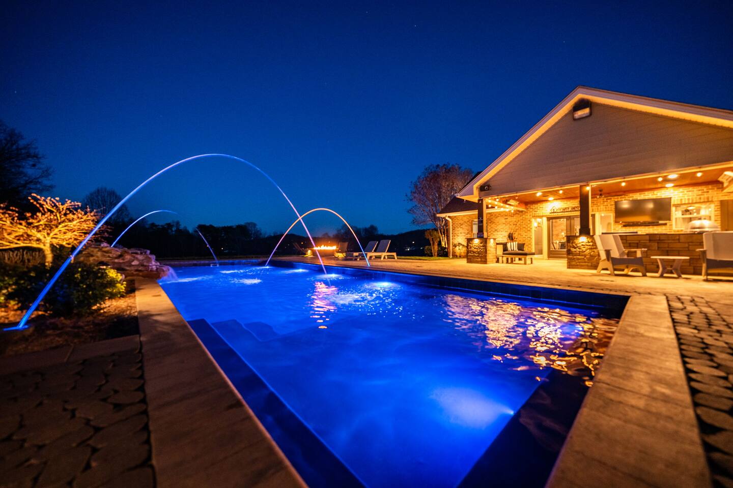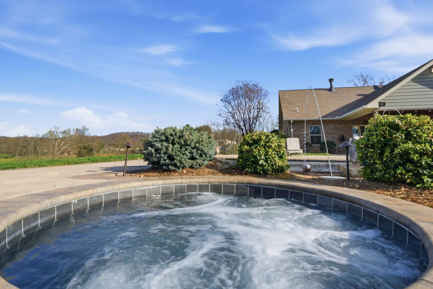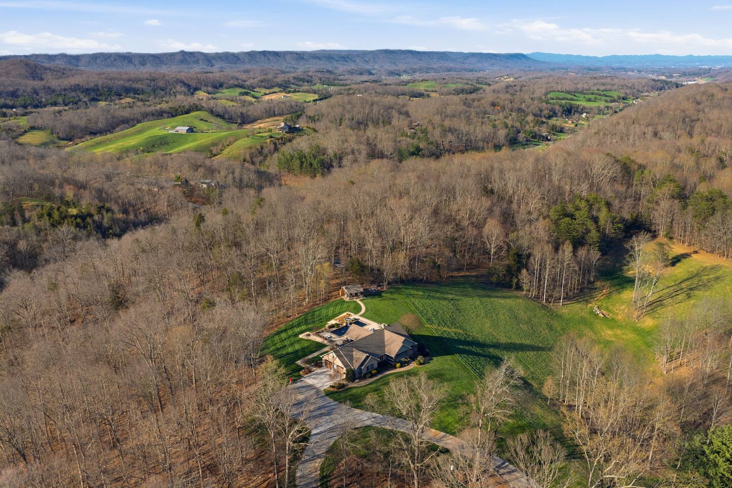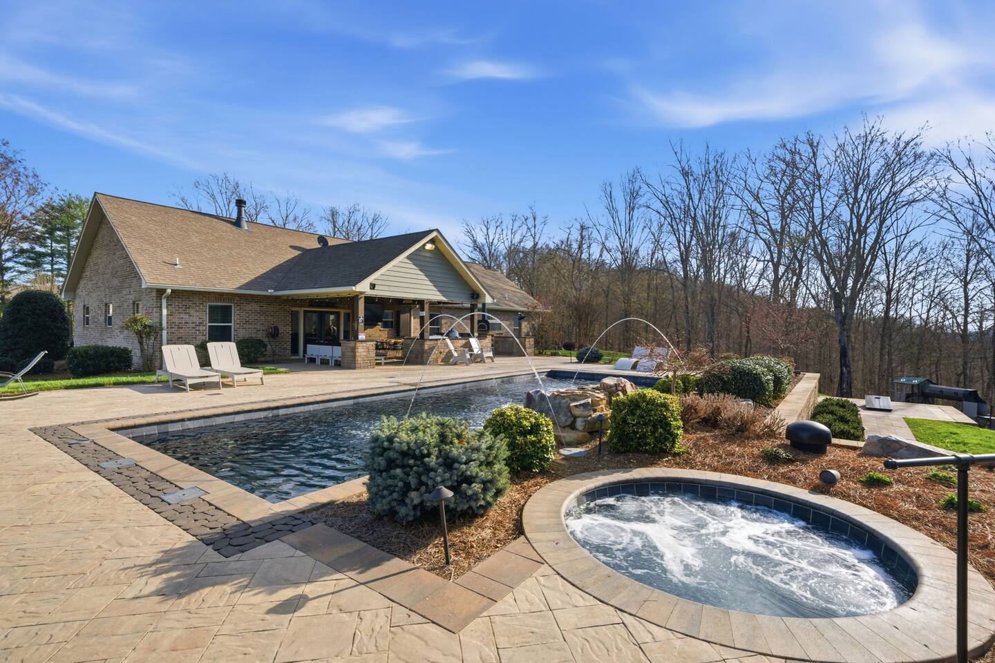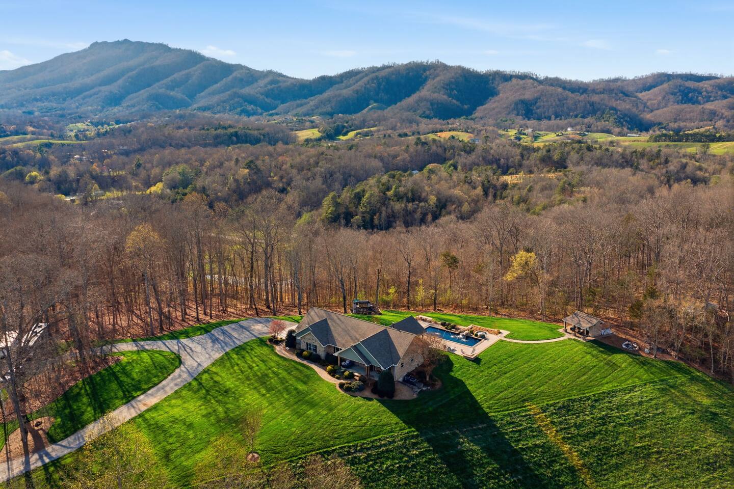 The Countryside by Peaceful Peak Private 26-Acre Retreat | Pool, Hot Tub & Outdoor Kitchen Escape to The Countryside — a private 26-acre modern rustic retreat designed for gathering, connection, and unforgettable stays. Perfect for couples traveling together or families, this 3-bedroom + loft home sleeps up to 10–12 guests and offers the space, privacy, and amenities you won’t find just anywhere — all just 10 minutes from Interstate 81. Why Guests Love The Countryside Private 26-acre setting with pasture views 🌿 Resort-style pool + hot tub Covered outdoor kitchen & dining area Sleeps up to 10–12 comfortably Perfect for families & group getaways Peaceful, secluded — yet close to everything Inside the Home Primary Suite King bed Spa-style ensuite bath Deep soaking tub Walk-in shower Additional Bedrooms Three main-level bedrooms. Primary with King and ensuite bath, 2 bedrooms with queen beds. 2nd Floor Attic Space (Great for Kids & Groups) Full-over-twin bunk bed Queen bed Sofa + TV Heated and Cooled/Window for natural light The open-concept 1st floor living area features warm textures, natural tones, and a wood-burning fireplace — perfect for relaxing after a full day outdoors. Outdoor Living (The Highlight) Private Pool + Backyard Experience In-ground pool with stone waterfall In-ground hot tub Fire pit gathering space Ambient lighting for evenings Expansive patio with open countryside views Covered Outdoor Kitchen Built-in grill, prep space & appliances Dining table for 6 Additional bar seating for 6 Covered space with mounted heaters A separate pool house with full bathroom adds convenience for outdoor living. There’s also space for yard games, making this ideal for families and group gatherings. A permanent cornhole area for family game night outdoors. The Experience Slow mornings with coffee on the porch. Afternoons spent poolside. Evenings under the stars. You may see cows grazing nearby and enjoy the quiet rhythm of country life — while still being minutes from dining, shopping, and major routes. Private. Peaceful. Designed for connection. The Peaceful Peak Standard We don’t just add homes to grow a portfolio — we carefully select properties that align with the experience our guests expect. Whether you stay at The Summit, The Nest, The District, The Wildflower, or The Countryside, you can expect consistency, care, and thoughtful preparation every time. Rental Agreement & Security Deposit All reservations for The Countryside by Peaceful Peak require a signed rental agreement and a $500 security deposit. After your booking is confirmed, you’ll receive a secure link to review and electronically sign the agreement, along with details regarding the security deposit. Please note, the rental agreement must be completed prior to arrival. Check-in instructions and access details will be shared once the agreement has been fully signed. The Countryside at Peaceful Peak is not a party venue. Parties and unauthorized events are strictly prohibited. The pool is maintained at a comfortable 80° during the season as needed. For an even warmer, more relaxing experience, you can upgrade to enhanced pool heating for $50 per night, we’ll raise the temperature to a cozy 85° for your stay. Thank you for your understanding as we work to provide a safe and well-managed experience for all guests.