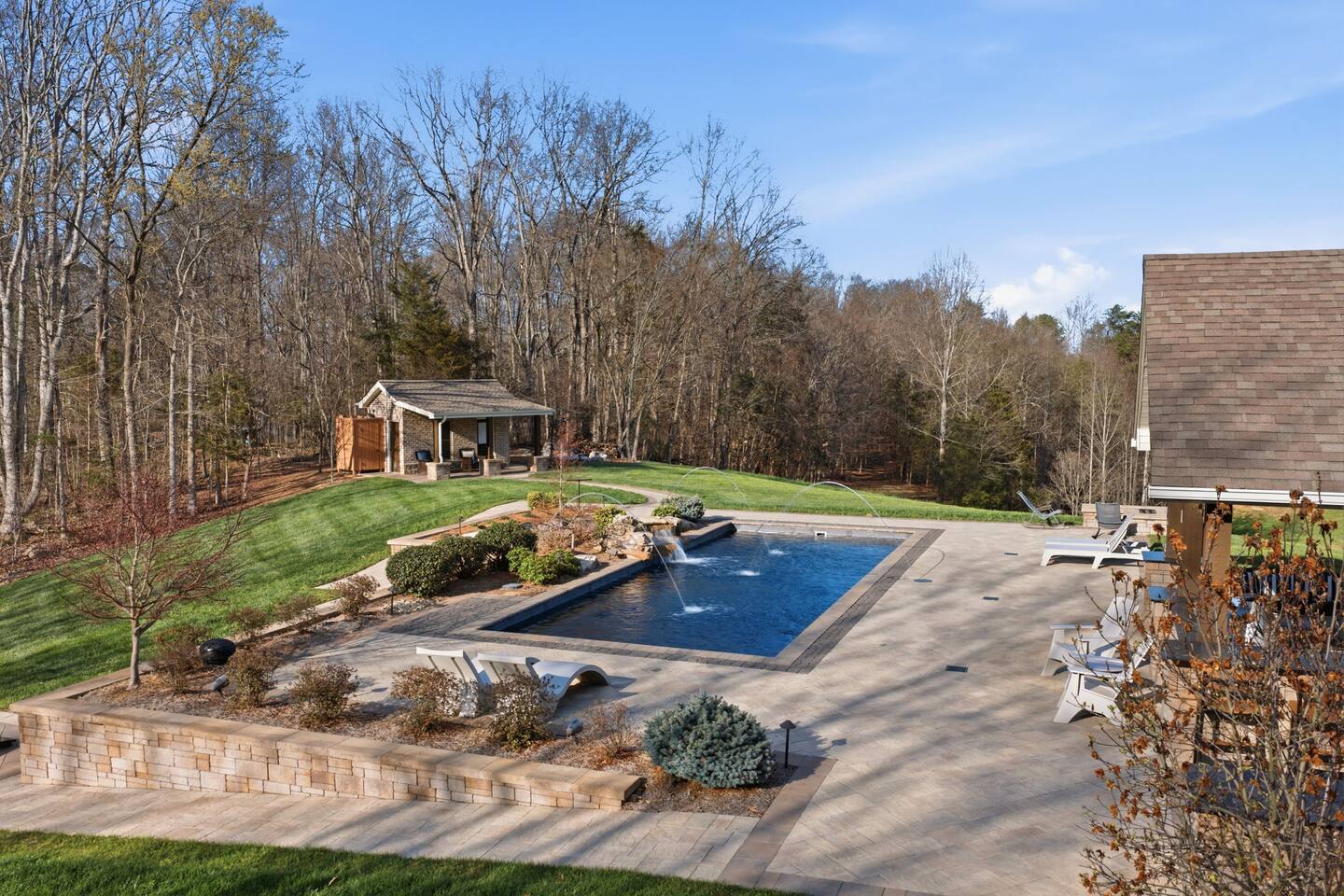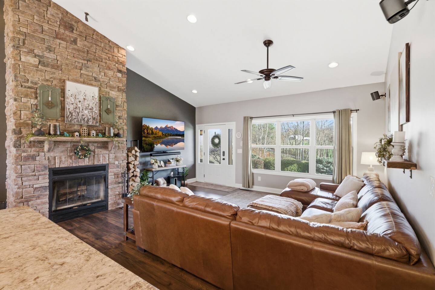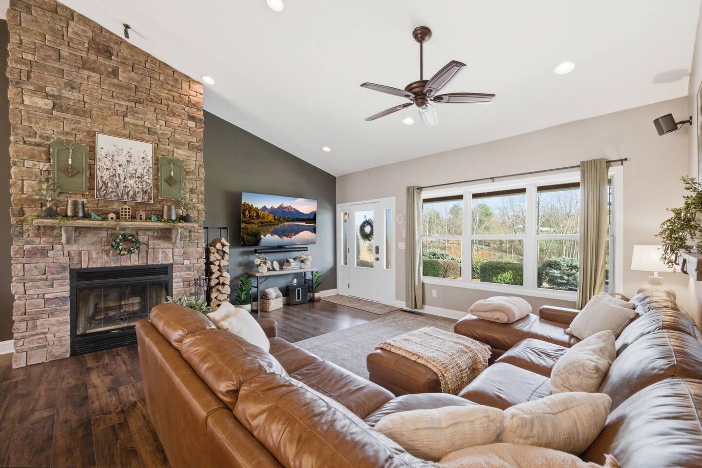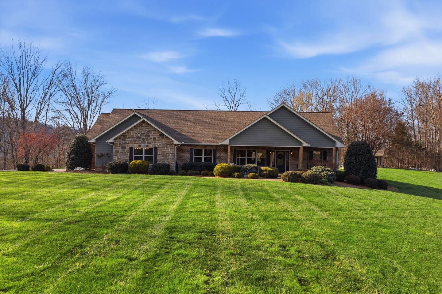 The Countryside by Peaceful Peak Private 26-Acre Retreat | Pool, Hot Tub & Outdoor Kitchen Escape to The Countryside — a private 26-acre modern rustic retreat designed for gathering, connection, and unforgettable stays. Perfect for couples traveling together or families, this 3-bedroom + loft home sleeps up to 10–12 guests and offers the space, privacy, and amenities you won’t find just anywhere — all just 10 minutes from Interstate 81. Why Guests Love The Countryside Private 26-acre setting with pasture views 🌿 Resort-style pool + hot tub Covered outdoor kitchen & dining area Sleeps up to 10–12 comfortably Perfect for families & group getaways Peaceful, secluded — yet close to everything Inside the Home Primary Suite King bed Spa-style ensuite bath Deep soaking tub Walk-in shower Additional Bedrooms Three main-level bedrooms. Primary with King and ensuite bath, 2 bedrooms with queen beds. 2nd Floor Attic Space (Great for Kids & Groups) Full-over-twin bunk bed Queen bed Sofa + TV Heated and Cooled/Window for natural light The open-concept 1st floor living area features warm textures, natural tones, and a wood-burning fireplace — perfect for relaxing after a full day outdoors. Outdoor Living (The Highlight) Private Pool + Backyard Experience In-ground pool with stone waterfall In-ground hot tub Fire pit gathering space Ambient lighting for evenings Expansive patio with open countryside views Covered Outdoor Kitchen Built-in grill, prep space & appliances Dining table for 6 Additional bar seating for 6 Covered space with mounted heaters A separate pool house with full bathroom adds convenience for outdoor living. There’s also space for yard games, making this ideal for families and group gatherings. A permanent cornhole area for family game night outdoors. The Experience Slow mornings with coffee on the porch. Afternoons spent poolside. Evenings under the stars. You may see cows grazing nearby and enjoy the quiet rhythm of country life — while still being minutes from dining, shopping, and major routes. Private. Peaceful. Designed for connection. The Peaceful Peak Standard We don’t just add homes to grow a portfolio — we carefully select properties that align with the experience our guests expect. Whether you stay at The Summit, The Nest, The District, The Wildflower, or The Countryside, you can expect consistency, care, and thoughtful preparation every time. Rental Agreement & Security Deposit All reservations for The Countryside by Peaceful Peak require a signed rental agreement and a $500 security deposit. After your booking is confirmed, you’ll receive a secure link to review and electronically sign the agreement, along with details regarding the security deposit. Please note, the rental agreement must be completed prior to arrival. Check-in instructions and access details will be shared once the agreement has been fully signed. The Countryside at Peaceful Peak is not a party venue. Parties and unauthorized events are strictly prohibited. The pool is maintained at a comfortable 80° during the season as needed. For an even warmer, more relaxing experience, you can upgrade to enhanced pool heating for $50 per night, we’ll raise the temperature to a cozy 85° for your stay. Thank you for your understanding as we work to provide a safe and well-managed experience for all guests.