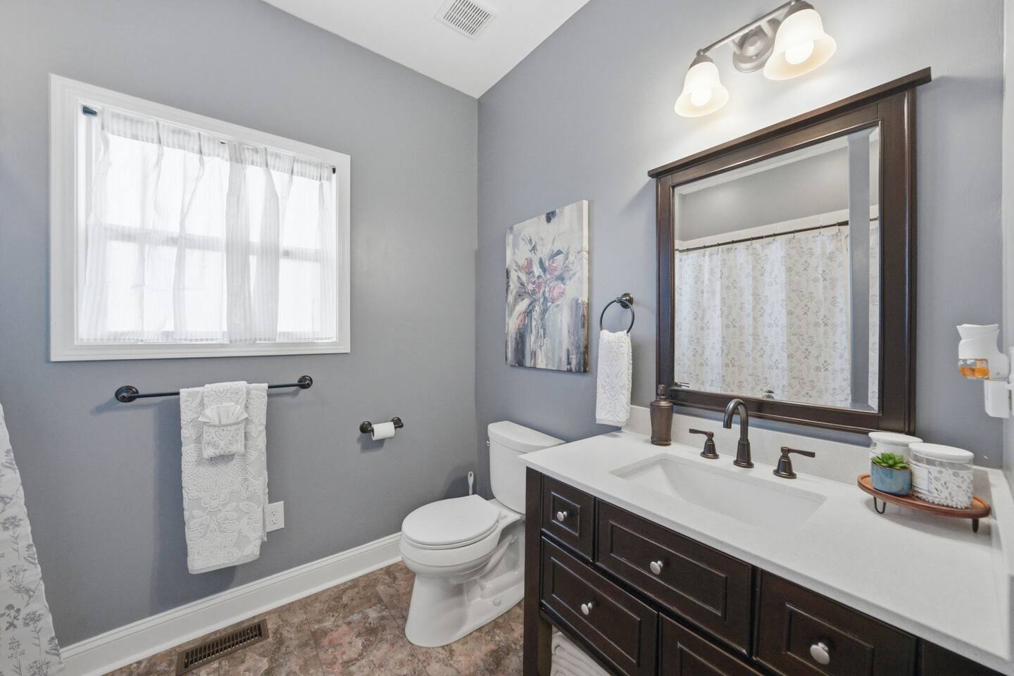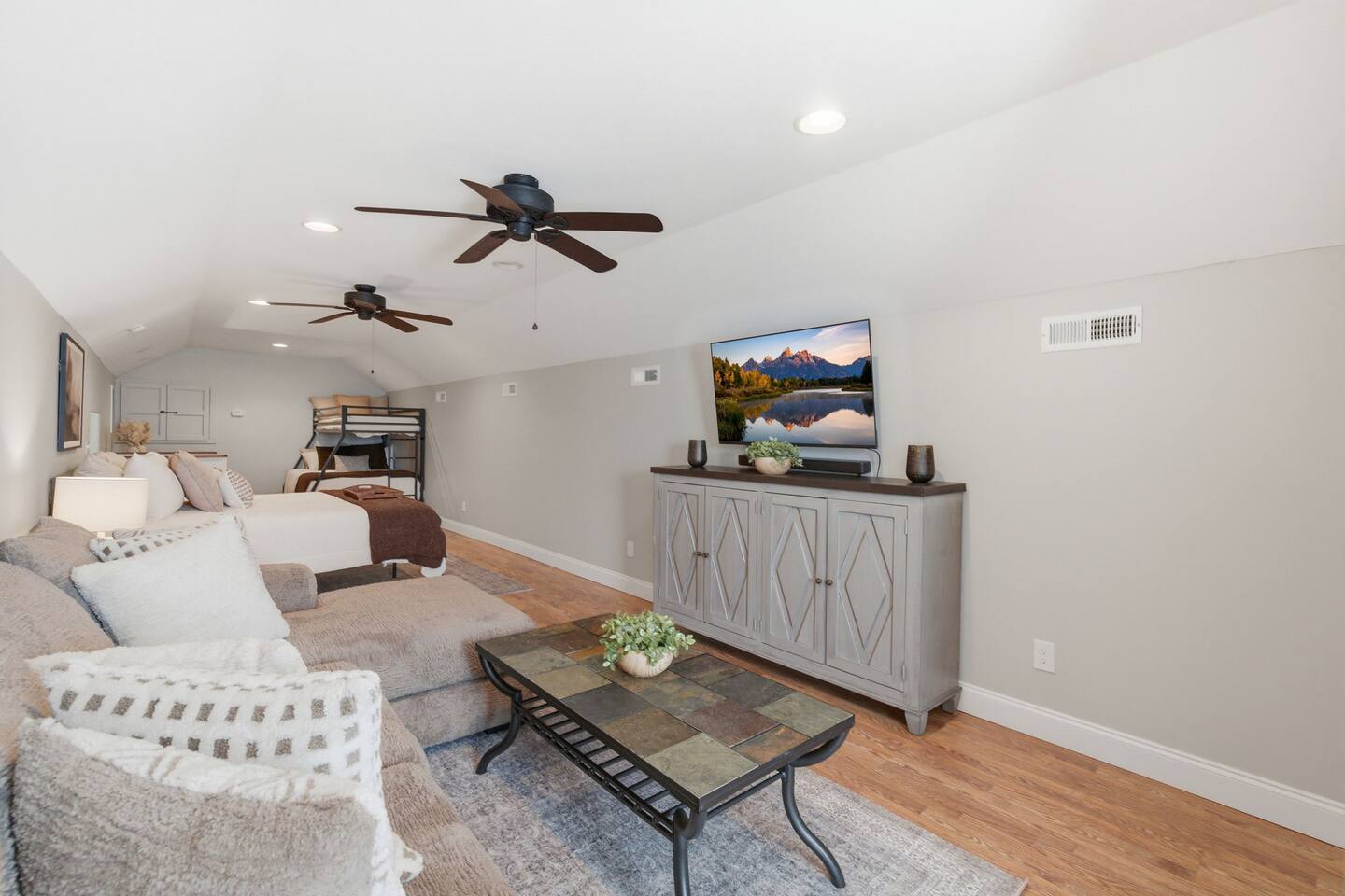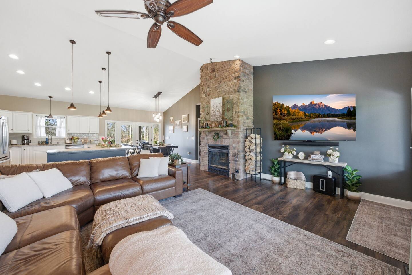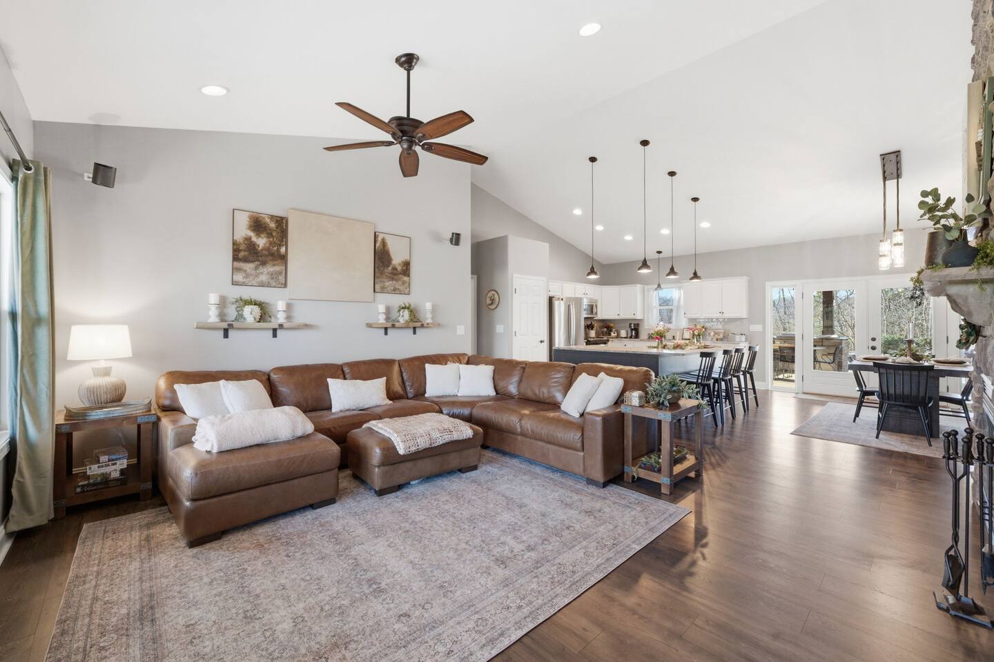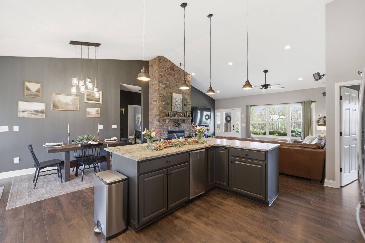 The Countryside by Peaceful Peak Private 26-Acre Retreat | Pool, Hot Tub & Outdoor Kitchen Escape to The Countryside — a private 26-acre modern rustic retreat designed for gathering, connection, and unforgettable stays. Perfect for couples traveling together or families, this 3-bedroom + loft home sleeps up to 10–12 guests and offers the space, privacy, and amenities you won’t find just anywhere — all just 10 minutes from Interstate 81. Why Guests Love The Countryside Private 26-acre setting with pasture views 🌿 Resort-style pool + hot tub Covered outdoor kitchen & dining area Sleeps up to 10–12 comfortably Perfect for families & group getaways Peaceful, secluded — yet close to everything Inside the Home Primary Suite King bed Spa-style ensuite bath Deep soaking tub Walk-in shower Additional Bedrooms Three main-level bedrooms. Primary with King and ensuite bath, 2 bedrooms with queen beds. 2nd Floor Attic Space (Great for Kids & Groups) Full-over-twin bunk bed Queen bed Sofa + TV Heated and Cooled/Window for natural light The open-concept 1st floor living area features warm textures, natural tones, and a wood-burning fireplace — perfect for relaxing after a full day outdoors. Outdoor Living (The Highlight) Private Pool + Backyard Experience In-ground pool with stone waterfall In-ground hot tub Fire pit gathering space Ambient lighting for evenings Expansive patio with open countryside views Covered Outdoor Kitchen Built-in grill, prep space & appliances Dining table for 6 Additional bar seating for 6 Covered space with mounted heaters A separate pool house with full bathroom adds convenience for outdoor living. There’s also space for yard games, making this ideal for families and group gatherings. A permanent cornhole area for family game night outdoors. The Experience Slow mornings with coffee on the porch. Afternoons spent poolside. Evenings under the stars. You may see cows grazing nearby and enjoy the quiet rhythm of country life — while still being minutes from dining, shopping, and major routes. Private. Peaceful. Designed for connection. The Peaceful Peak Standard We don’t just add homes to grow a portfolio — we carefully select properties that align with the experience our guests expect. Whether you stay at The Summit, The Nest, The District, The Wildflower, or The Countryside, you can expect consistency, care, and thoughtful preparation every time. Rental Agreement & Security Deposit All reservations for The Countryside by Peaceful Peak require a signed rental agreement and a $500 security deposit. After your booking is confirmed, you’ll receive a secure link to review and electronically sign the agreement, along with details regarding the security deposit. Please note, the rental agreement must be completed prior to arrival. Check-in instructions and access details will be shared once the agreement has been fully signed. The Countryside at Peaceful Peak is not a party venue. Parties and unauthorized events are strictly prohibited. The pool is maintained at a comfortable 80° during the season as needed. For an even warmer, more relaxing experience, you can upgrade to enhanced pool heating for $50 per night, we’ll raise the temperature to a cozy 85° for your stay. Thank you for your understanding as we work to provide a safe and well-managed experience for all guests.