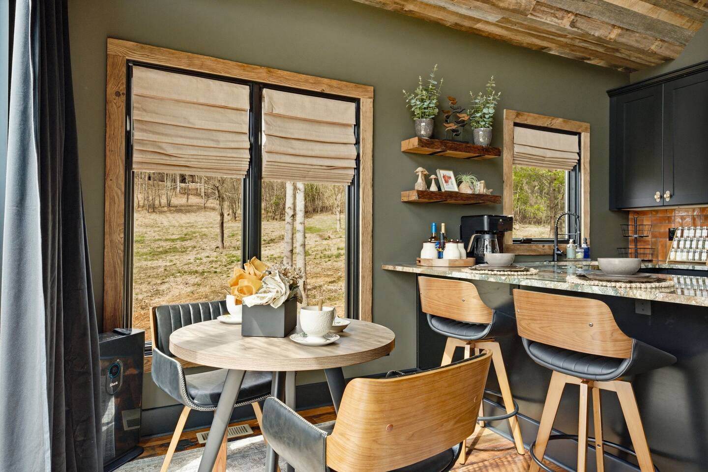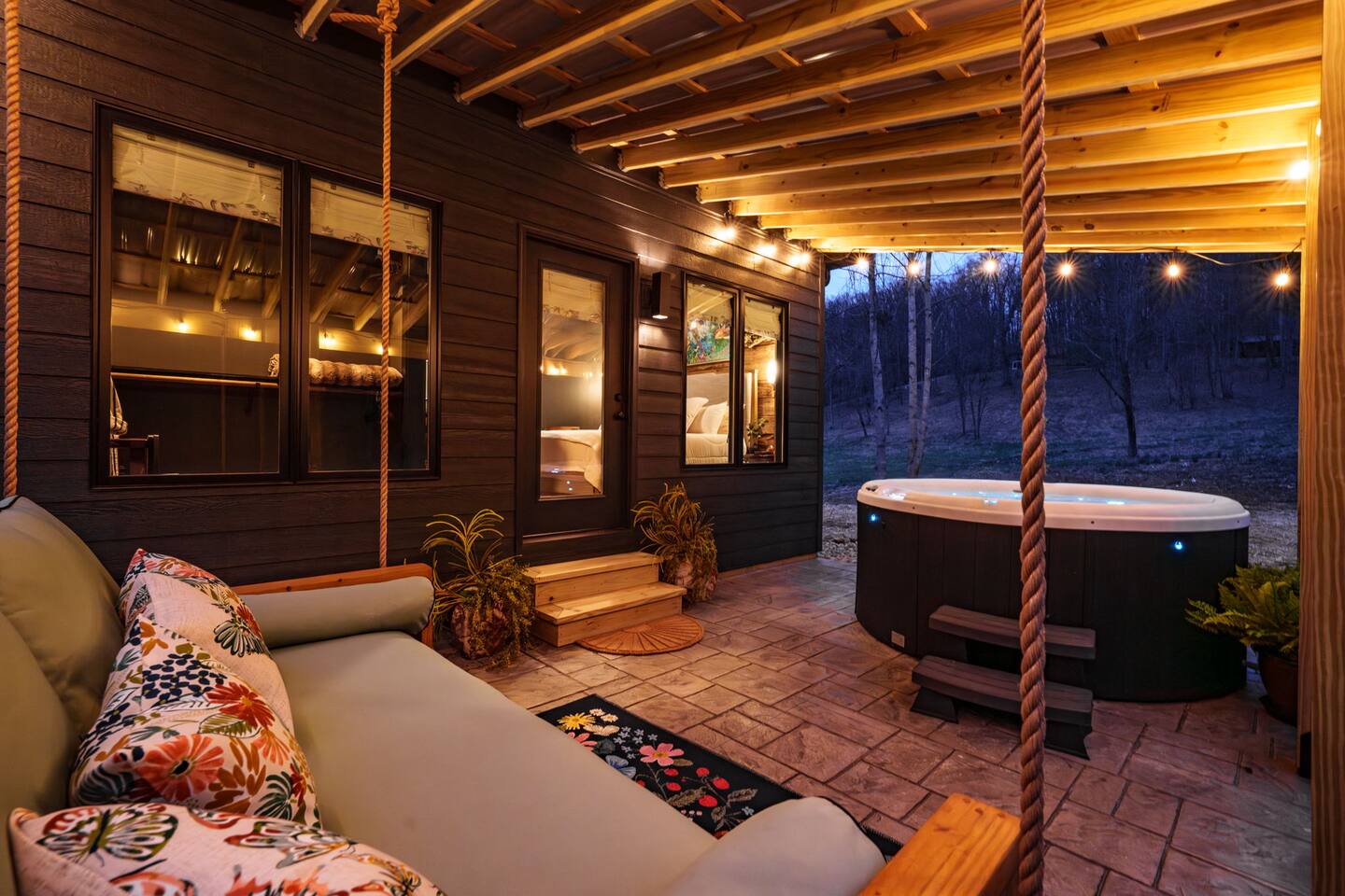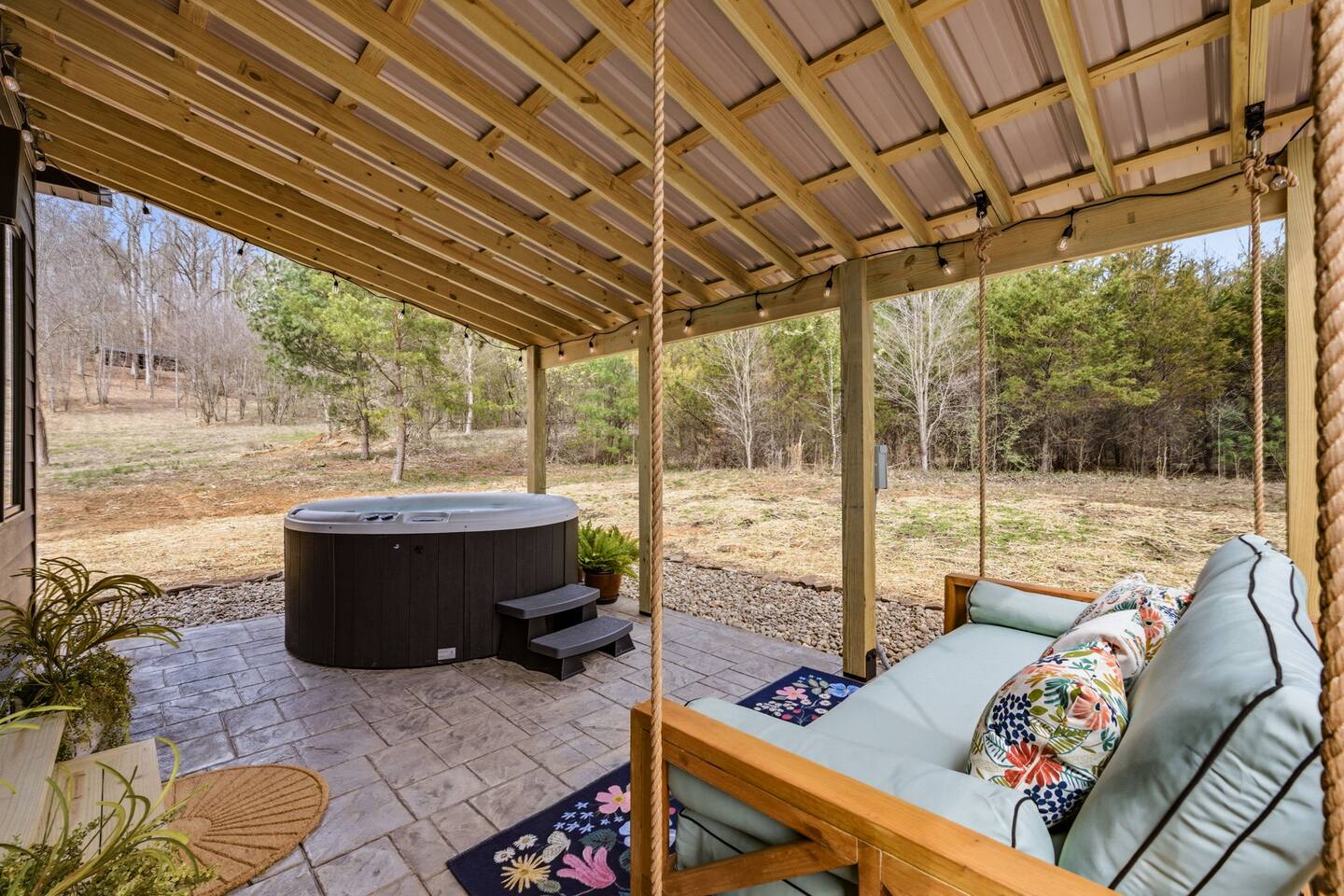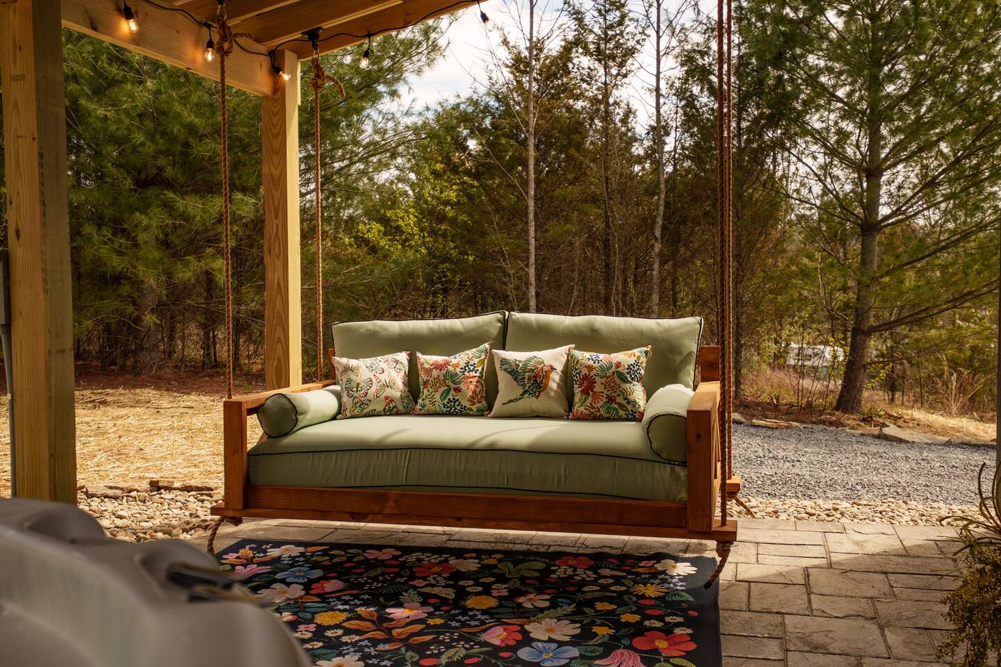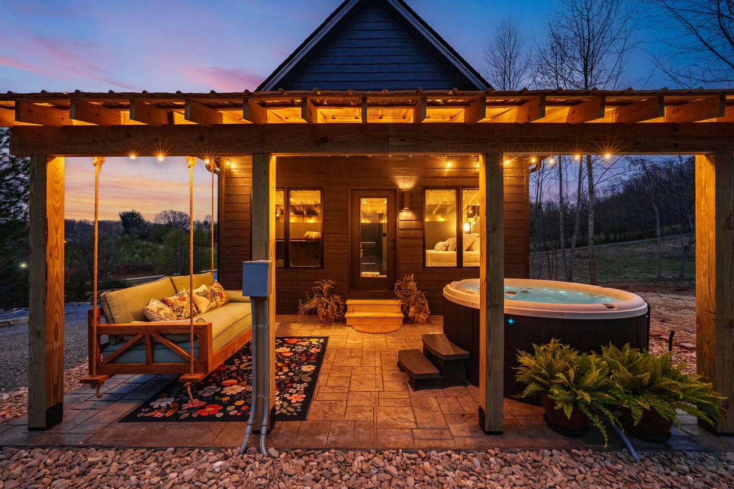 The Nest at Peaceful Peak is a private luxury retreat designed for couples to unwind and reconnect. This 1-bedroom escape features a cozy fireplace, full kitchen, and curated interiors with a natural stone sink and design elements that bring the outdoors in. Step outside to a covered patio with a hot tub, hanging bed swing, and peaceful wooded views. Tucked away yet just minutes from downtown Kingsport, it’s the perfect balance of seclusion and convenience.