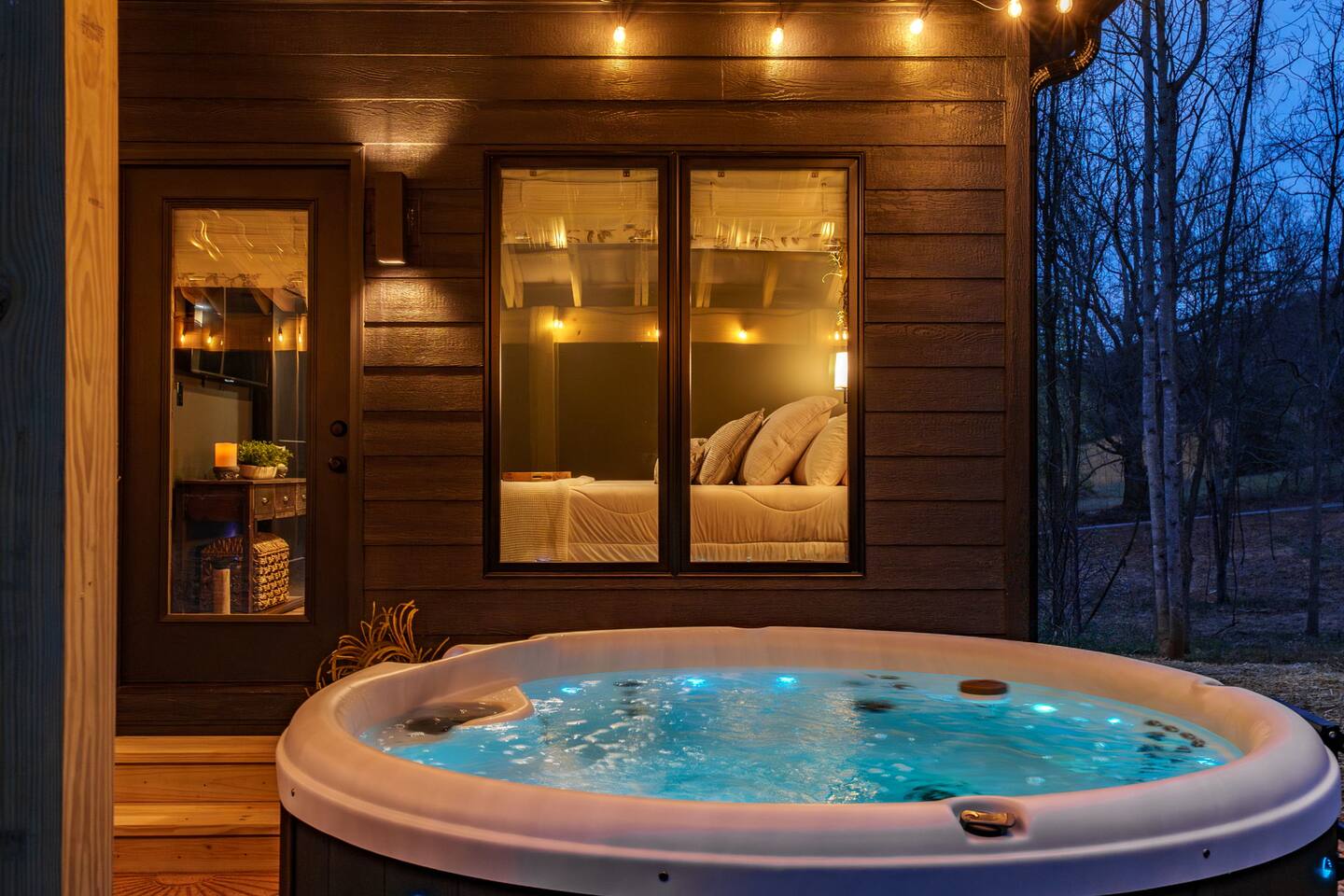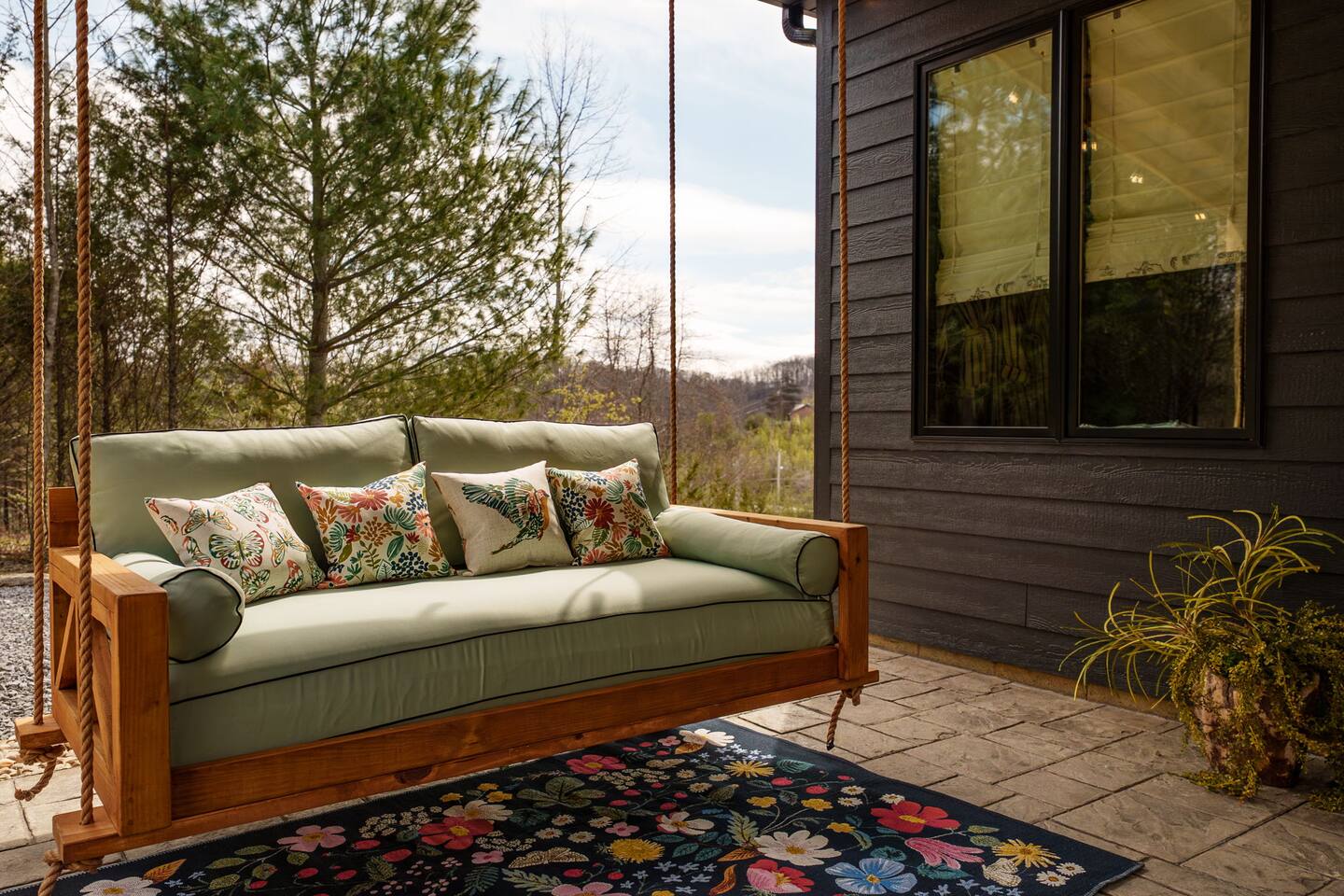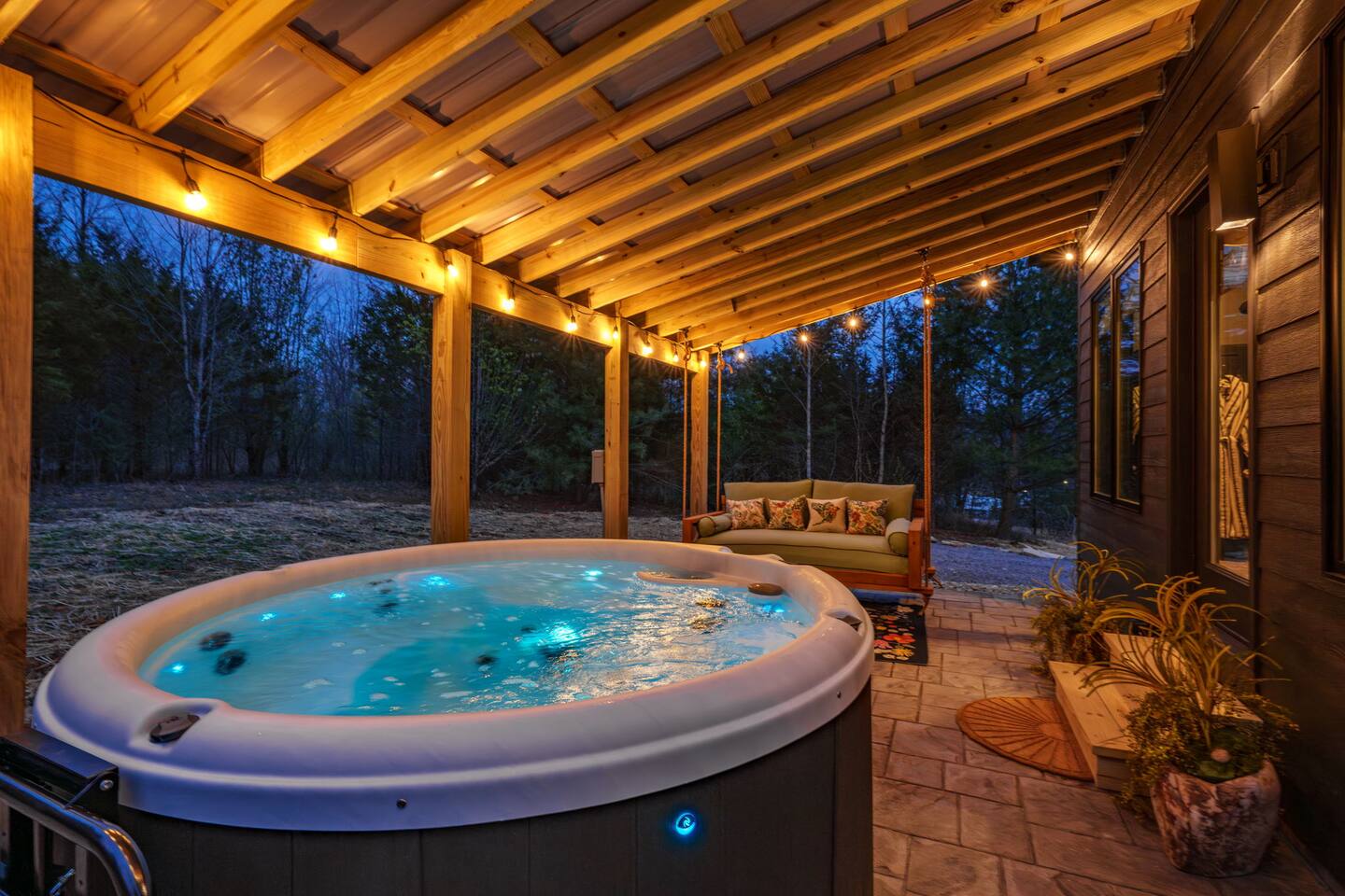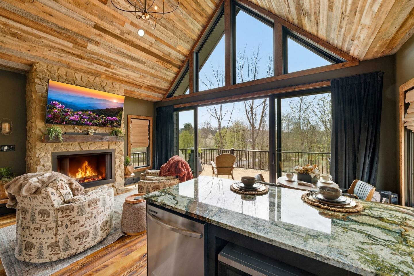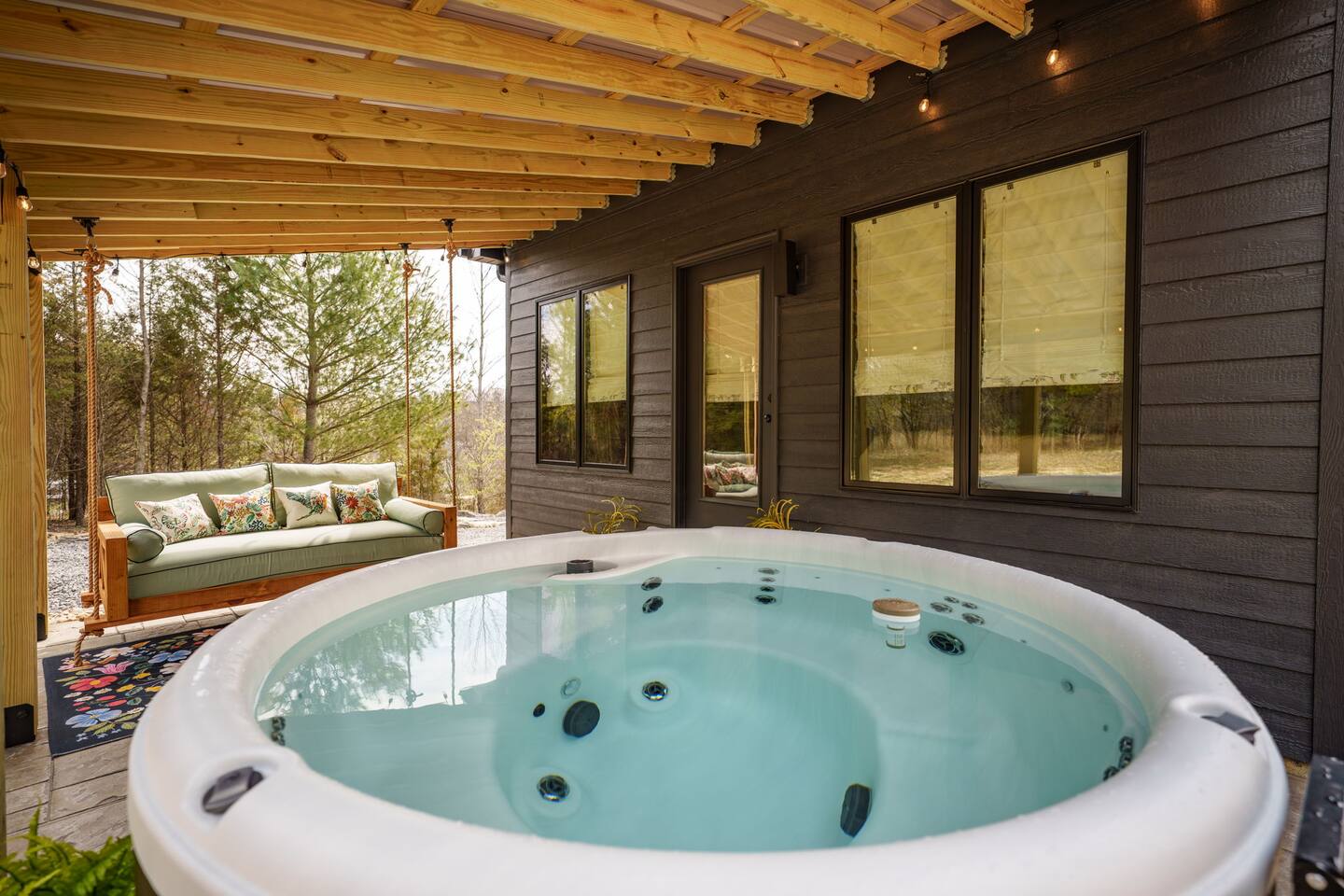 The Nest at Peaceful Peak is a private luxury retreat designed for couples to unwind and reconnect. This 1-bedroom escape features a cozy fireplace, full kitchen, and curated interiors with a natural stone sink and design elements that bring the outdoors in. Step outside to a covered patio with a hot tub, hanging bed swing, and peaceful wooded views. Tucked away yet just minutes from downtown Kingsport, it’s the perfect balance of seclusion and convenience.