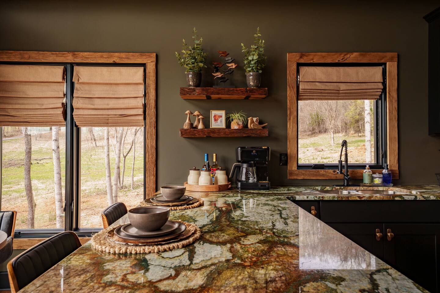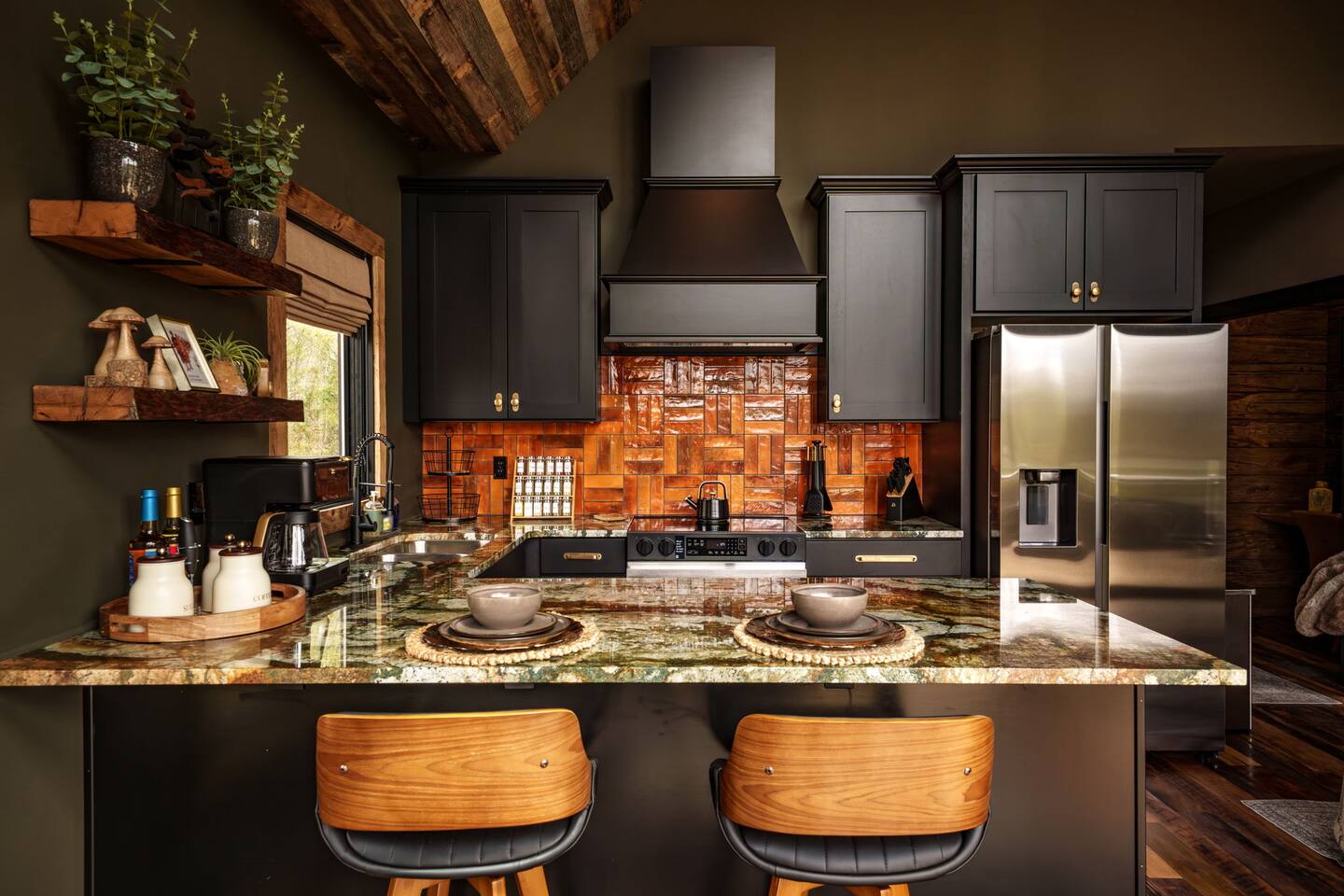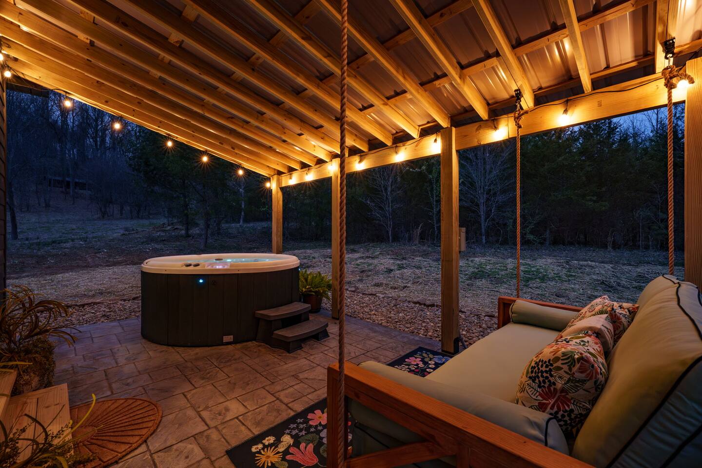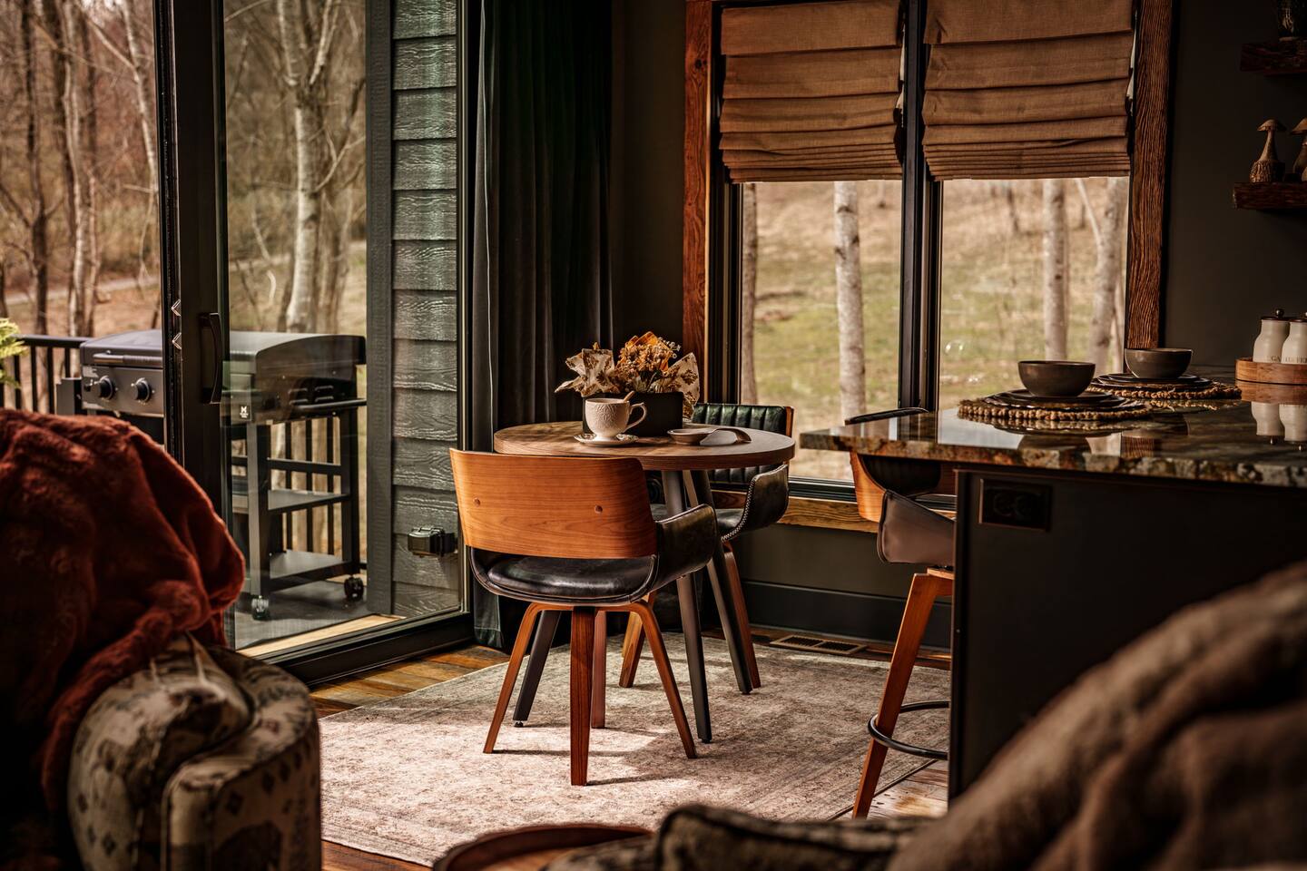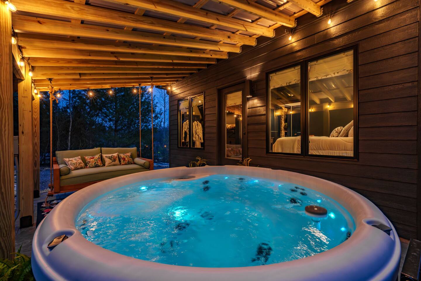 The Nest at Peaceful Peak is a private luxury retreat designed for couples to unwind and reconnect. This 1-bedroom escape features a cozy fireplace, full kitchen, and curated interiors with a natural stone sink and design elements that bring the outdoors in. Step outside to a covered patio with a hot tub, hanging bed swing, and peaceful wooded views. Tucked away yet just minutes from downtown Kingsport, it’s the perfect balance of seclusion and convenience.