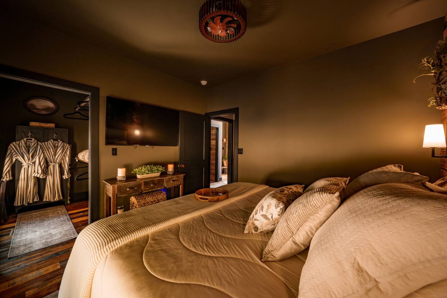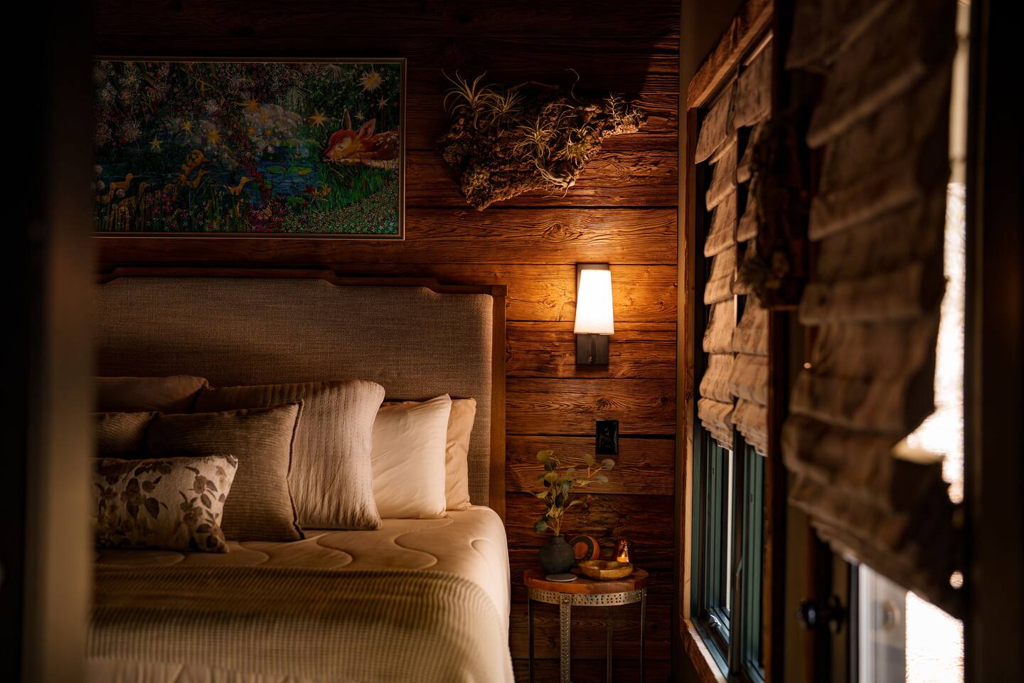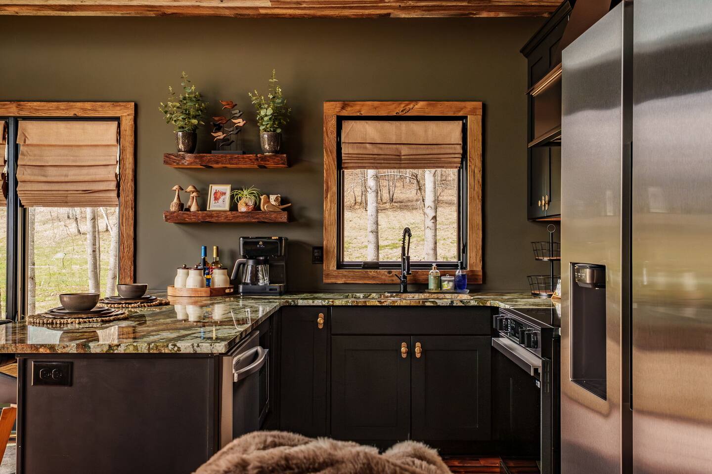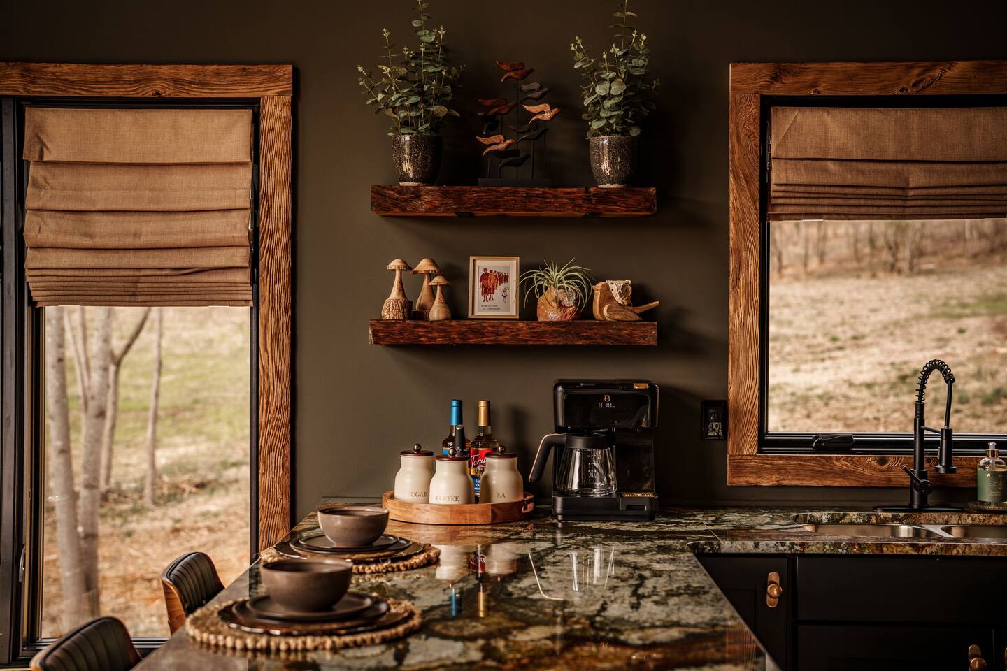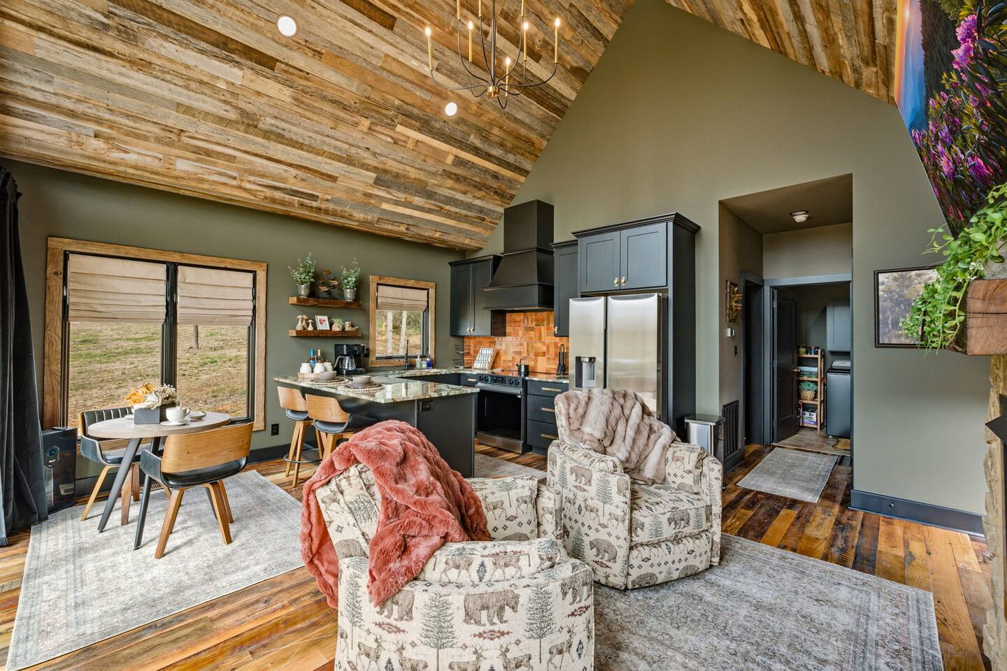 The Nest at Peaceful Peak is a private luxury retreat designed for couples to unwind and reconnect. This 1-bedroom escape features a cozy fireplace, full kitchen, and curated interiors with a natural stone sink and design elements that bring the outdoors in. Step outside to a covered patio with a hot tub, hanging bed swing, and peaceful wooded views. Tucked away yet just minutes from downtown Kingsport, it’s the perfect balance of seclusion and convenience.