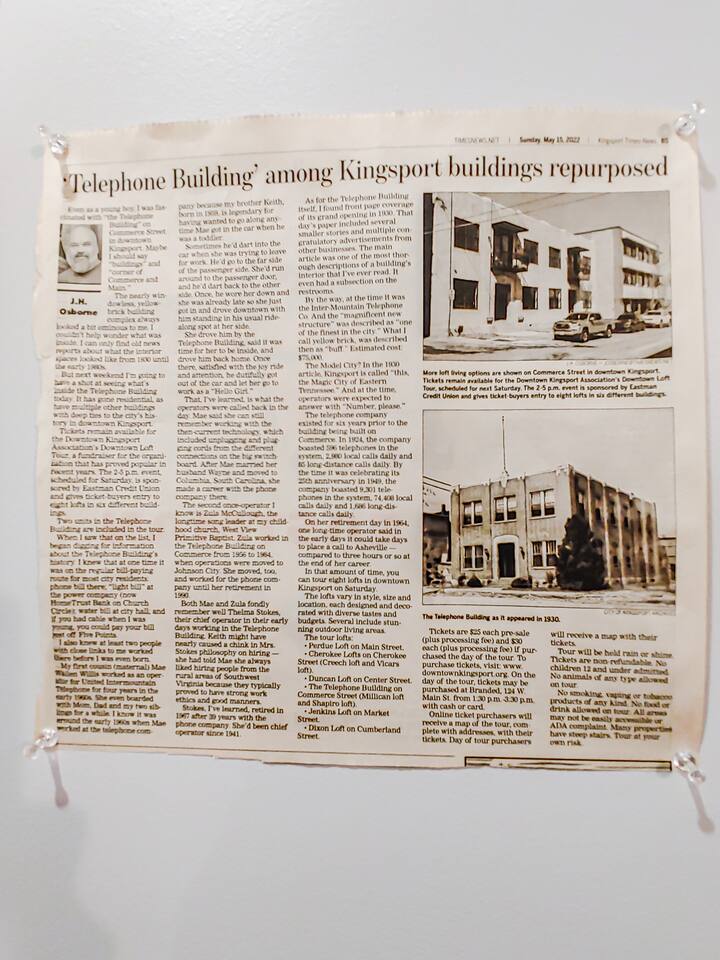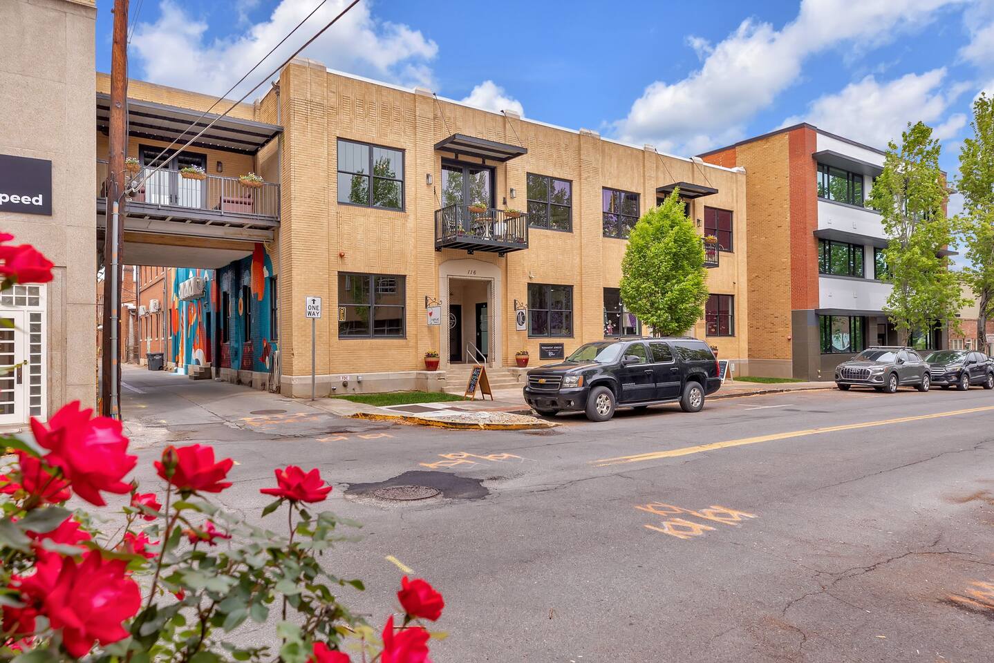 Step into this newly redesigned 2-bed, 1-bath loft in downtown Kingsport! Nestled in a historic telephone building, it boasts cozy eclectic decor, 13ft ceilings, and exposed brick walls adorned with custom artwork. With two cozy bedrooms, a spacious living area, and a Juliet-style balcony, it's the perfect blend of modern comfort and historic charm. Explore nearby restaurants, shops, and breweries, or simply unwind in this vibrant urban oasis!