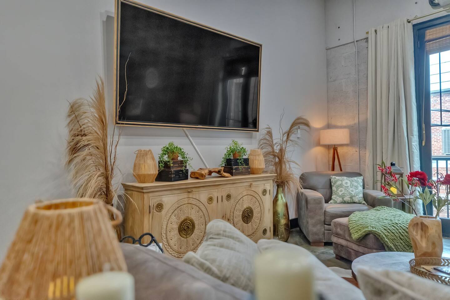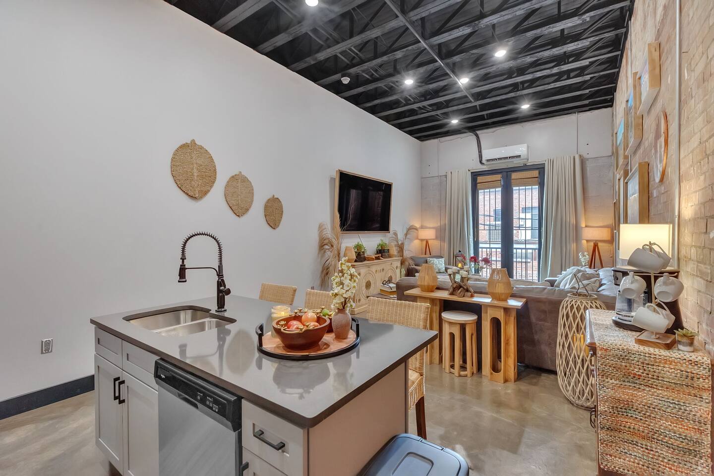 Update for September 28th, 2025: The gym previously located on the 1st floor is relocating and will be fully relocated by 10/6/25. Gym noise mentioned in past reviews will no longer be an issue. 🎨 Welcome to the Urban Artistry Loft | Where Design Meets Downtown Living Step into a space inspired by local creativity and built for comfort. Located in the historic Kingsport Telephone Building (est. 1930), the Urban Artistry Loft is a thoughtfully designed 2-bedroom, 1-bath retreat filled with original art from Appalachian artists and modern amenities throughout. Perfect for couples, friends, or business travelers, this spacious second-floor loft puts you in the heart of downtown Kingsport’s food, culture, and charm. 🛏 What You’ll Love Inside: Two private bedrooms with plush bedding and Smart TV's Gallery-style decor featuring curated local artwork Open living/dining area ideal for relaxing, streaming, or remote work Full kitchen stocked with cookware + dedicated coffee station (pods, grounds, creamers, sweeteners) Private washer & dryer with essentials White noise machine for a restful nights sleep. 📍 Downtown Kingsport – Walk to It All Enjoy staying above the region’s first wine bar and steps from: Breweries, restaurants, cafés, and shops Riverwalk, parks, and live music venues 🚗 Quick access to area highlights: • Domtar Park – 2.9 mi • Indian Path Medical Center – 4 mi - Holston Valley Medical Ctr 0.9 mi • Johnson City Med Center – 22 mi • Bristol Casino – 22 mi Good to Know: 2nd-floor walk-up only (no elevator) Historic building with active commercial tenants Expect some street or business noise due to central downtown location Rental agreement required before arrival (signed electronically) Digital guidebook provided after confirmation with local tips and info The Urban Artistry Loft is a truly one-of-a-kind stay, blending artistic expression with modern convenience in one of Kingsport’s most iconic buildings. Book your stay today and enjoy the culture, connection, and charm of downtown Kingsport, right outside your door.